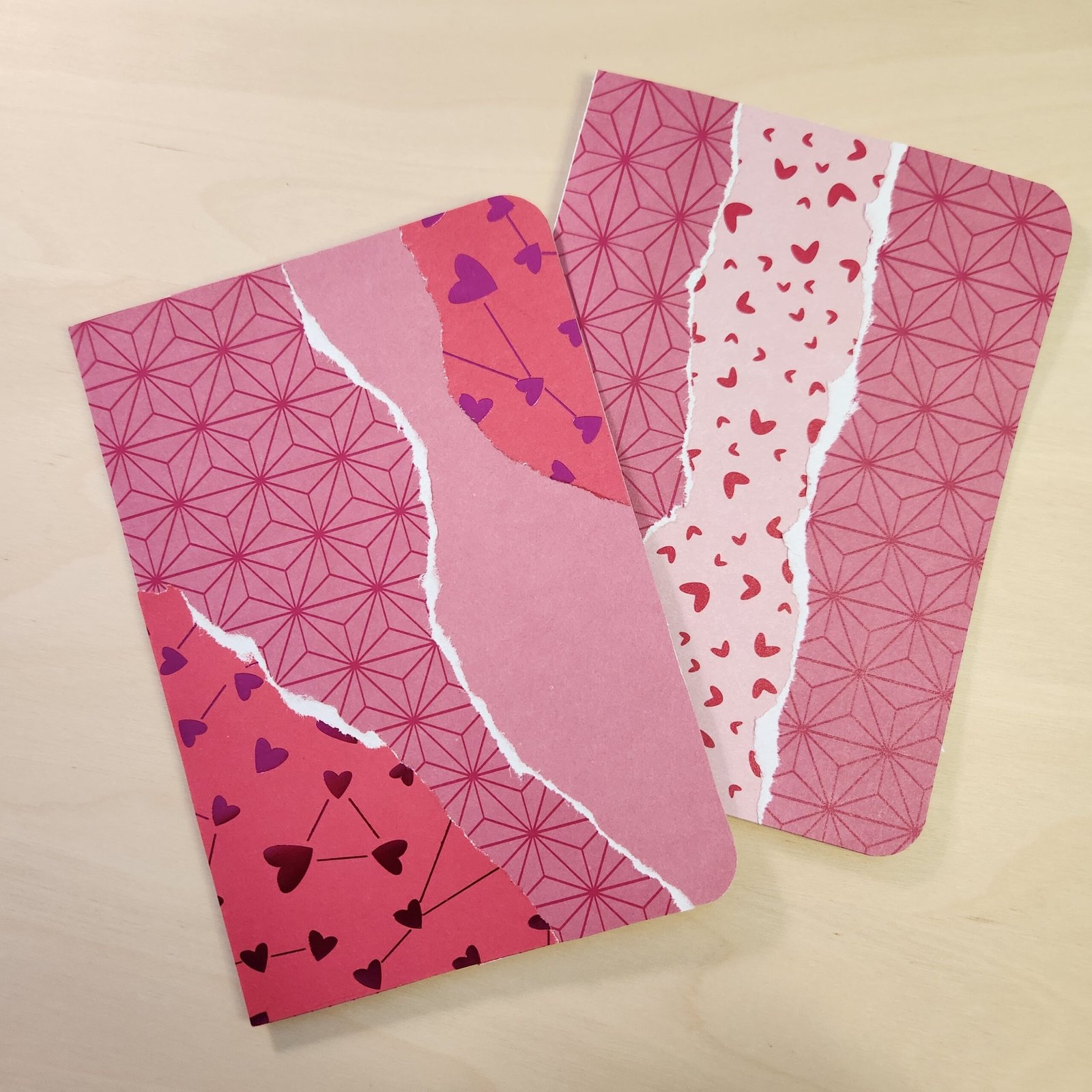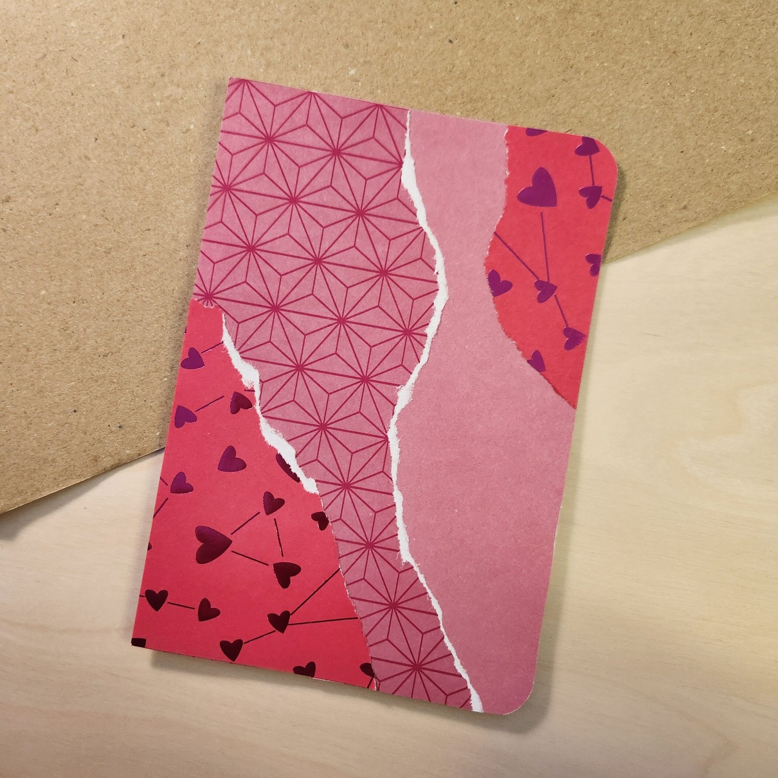Ces cartes sont uniques et réalisées par collage à la main. Elles assemblent des motifs colorés. Elles sont le cadeau idéal pour les fans de craft et de papèterie.
