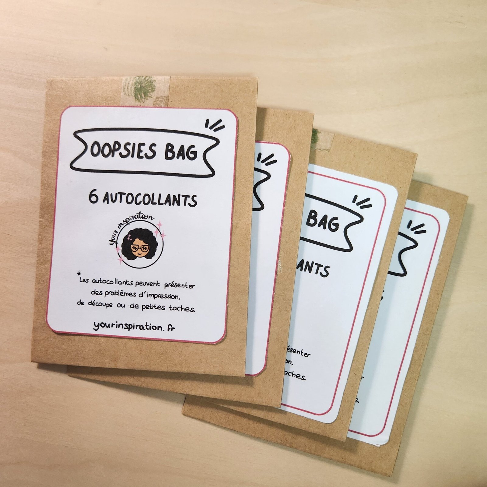 Adopte un oopsie bags pour redonner une chance à 6 autocollants imparfaits aléatoires. Chaque set est différent et varie selon le stock disponible.