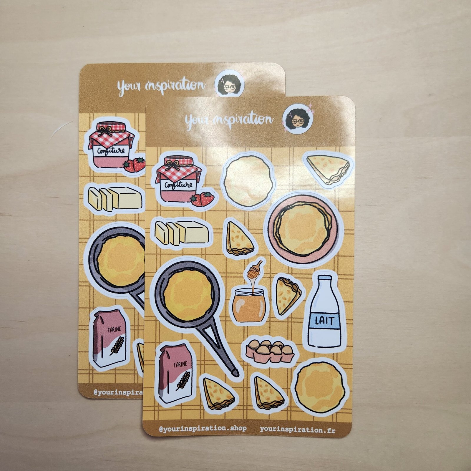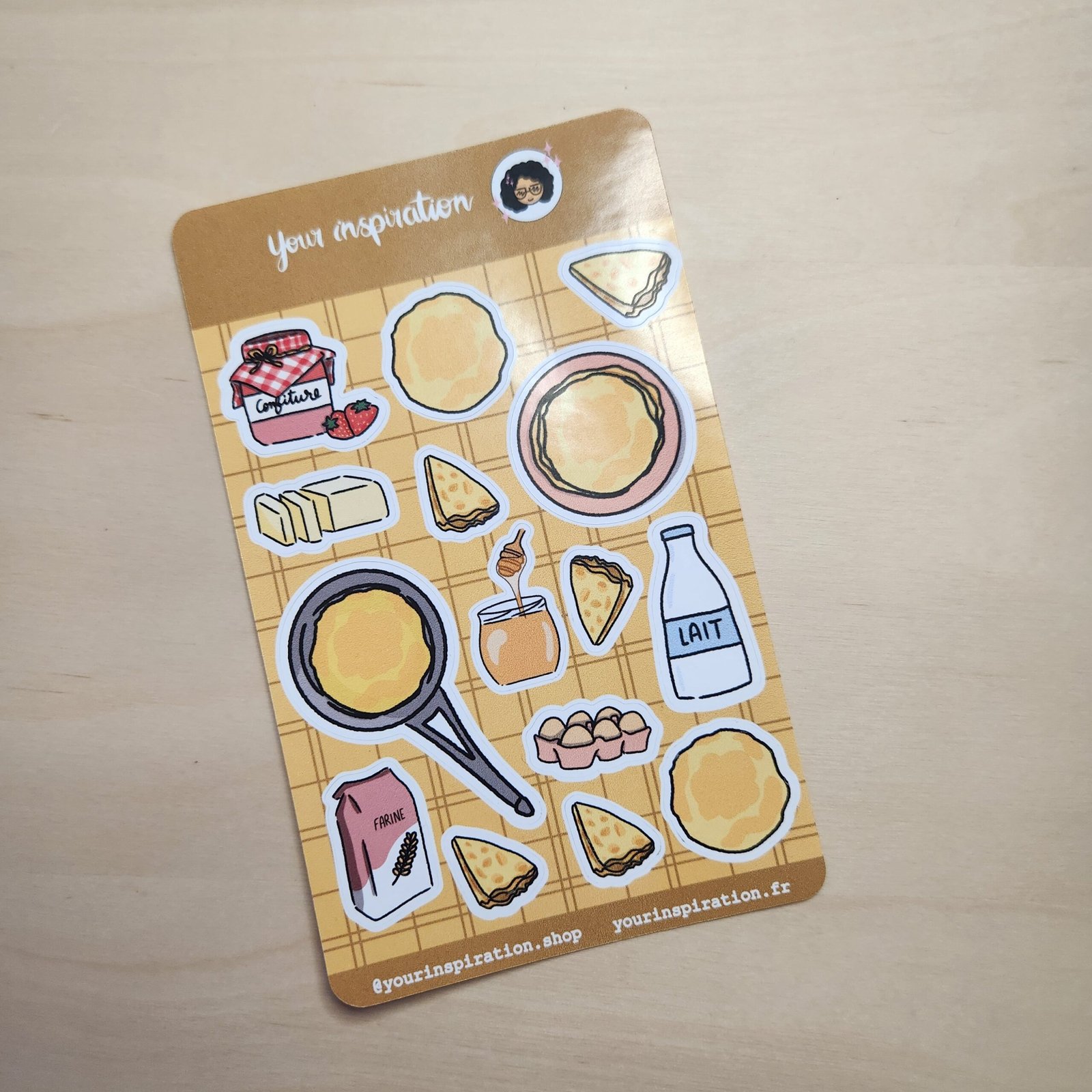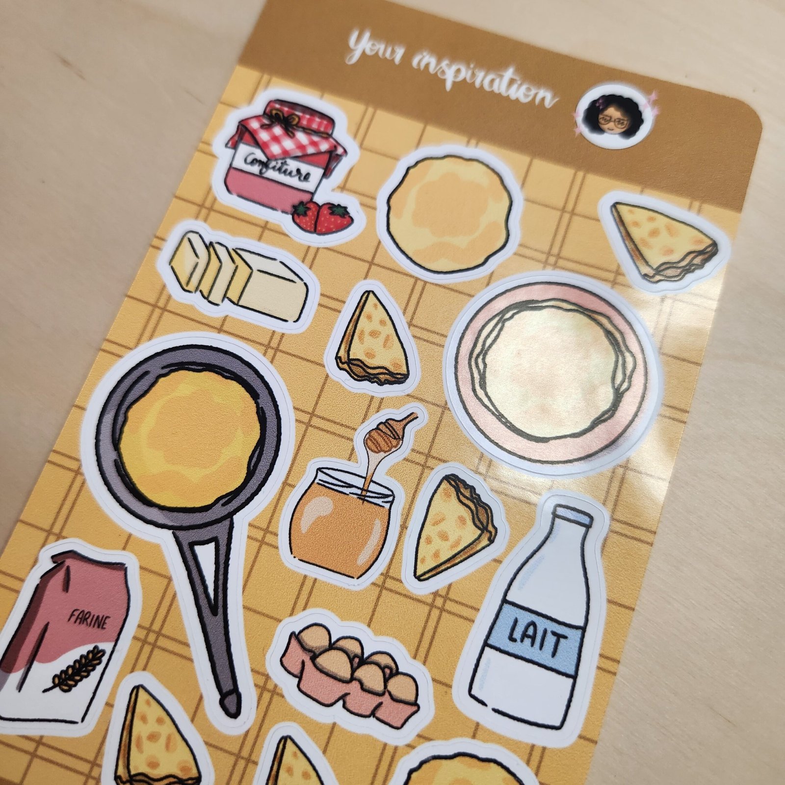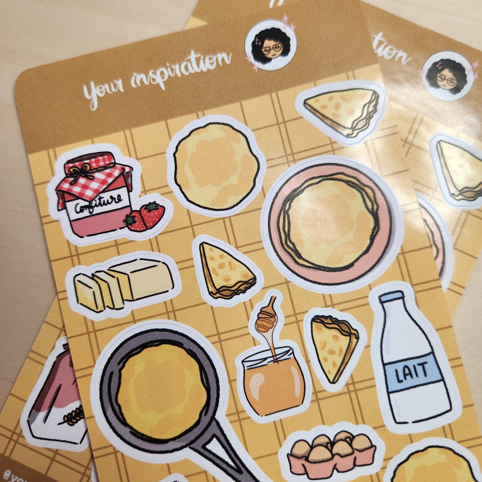 C’est la chandeleur ! C’est le moment de faire des crêpes et quoi de mieux que cette planche d’autocollants pour décorer ton journal ! Conçue, imprimée et découpée dans mon home studio, chaque planche d’autocollants est fabriquée avec soin et amour.